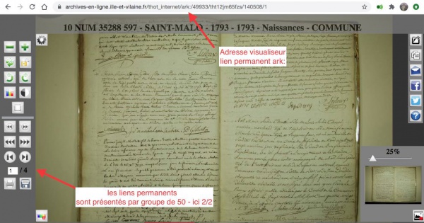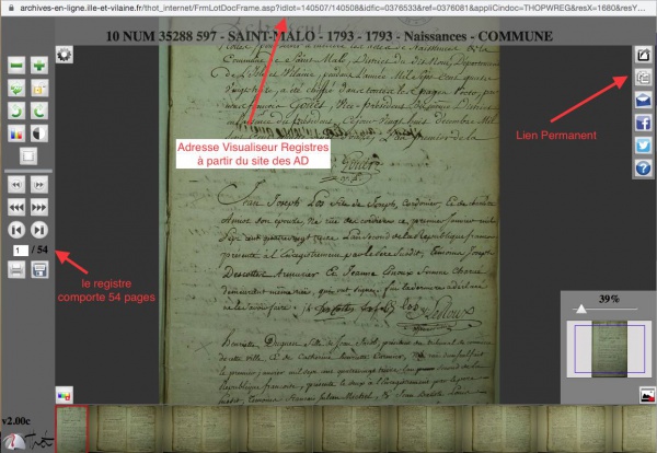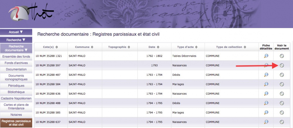 Exemple ici: Registre 10NUM35288/597 - Saint-Malo - 1793 - Naissances - COMMUNE
