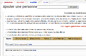 Attention, je n'encourage pas le pillage de généalogies qui ne sont pas les votres. Ce script a été réalisé dans l'idée que ceux qui ont une généalogie sur Geneweb/Geneanet puisse recopier ici leurs propres données.