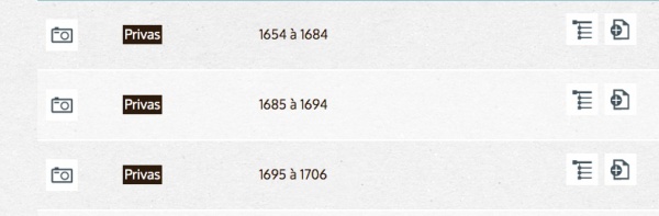 Les registres paroissiaux et d'état civil de l'Ardèche, ici: Privas, se présentent de la façon suivante :