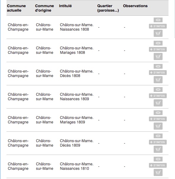 Les registres paroissiaux et d'état civil de la Marne, ici: Châlons-en-Champagne, se présentent de la façon suivante :