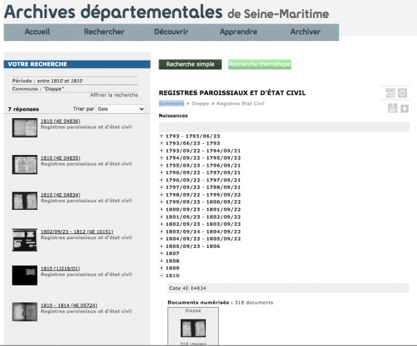Sources d'Etat civil en ligne de la Seine-Maritime